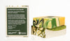 Ingredients: organic shea oil, organic coconut oil, water, organic shea butter, sodium hydroxide, macadamia oil, organic cocoa butter, castor oil, lemon scented ironbark oil, lemongrass oil, eucalyptus peppermint oil, lemon myrtle oil, lime oil, zest myrtle oil, mineral colour, activated charcoal.